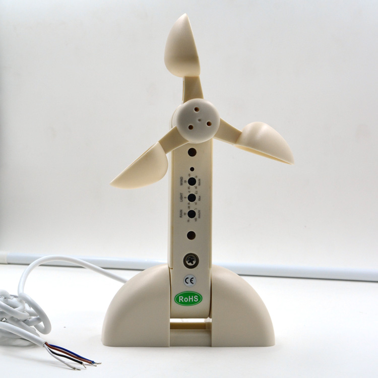3)有線風(fēng)光雨感應(yīng)器:總共4根線,2根為12V電源線、1根為風(fēng)雨信號線、1根光信號線(0~5V高低電平信號)。